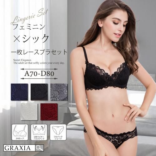 ショーツは肌が美しく透ける全面レースで、シックなムードをあと押し。