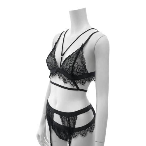 総柄レースのダークでセクシーなブラ・ショーツタイプのガーターランジェリー(GARTER LINGERIE) ブラック