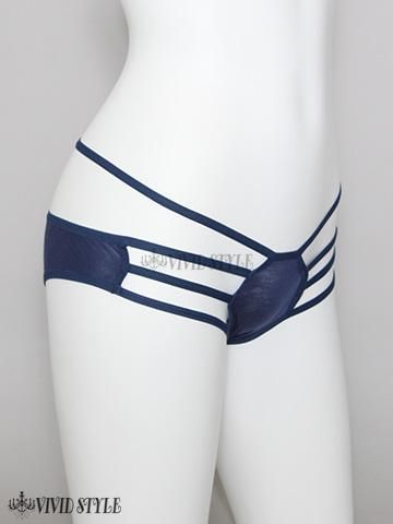 デザイン的なストリング使いがセクシーなローライズショーツ(T-BACK・SHORTS) ネイビー