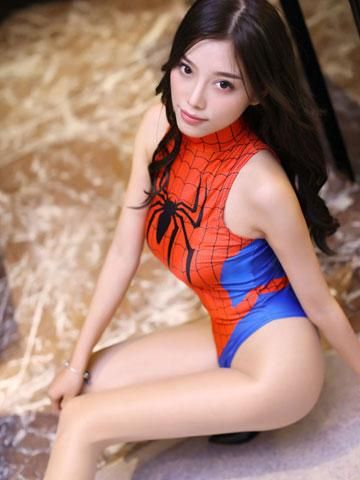 ハイレグカットがセクシーなス○イダーマン風デザインのレオタード(LEOTARD)