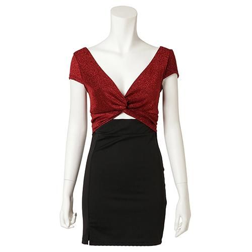 微細なラメがエレガントに輝くフロントオープンのドレス(キャバドレス・CABARETDRESS)。伸縮性のあるブラックカラーのストレッチ素材のベースに織り込んだシャリ感のあるラメ糸が、上品なゴージャスさで美しく輝きます。バスト部分をフロントでクロスさせることでバストにボリュームがうまれ、チラリと肌魅せできるのも嬉しいポイント♪背中側もVネックになっているので、スッキリとした印象を与えてくれます。