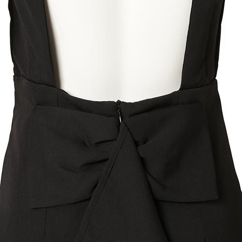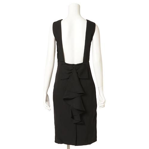 バックスタイルで魅せる背中開きのセクシードレス(キャバドレス・CABARETDRESS)。露出を抑えた前身頃に反して大胆に背中を開いたバックスタイルが大人セクシーなミディ丈ワンピース。ウエストには大きなリボンのラッフルがしっとりと揺れ、高級感溢れる仕上がりです。