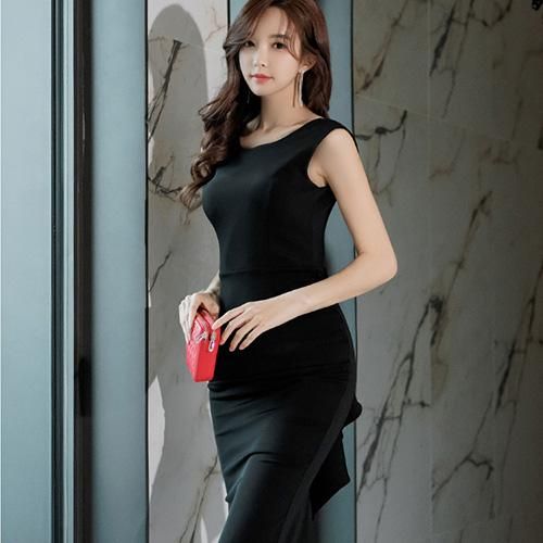 タグ:#ミディアムドレス #タイト #ノースリーブ #ハイウエスト #ブラック系