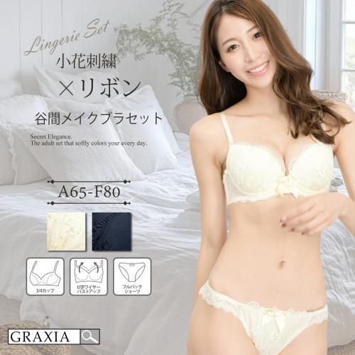 小花刺繍とリボンのあしらいで、ほんのり甘くロマンティックに。丸みのある下厚の立体カップが優しくリフトし、自然な美胸をメイク。ショーツにもレースを贅沢に飾り、センシャルな印象をプラス。