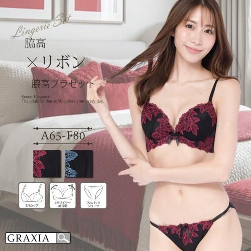 【ブラックフライデー★20%OFFセール】大人っぽいデザインと上下お揃いのリボン付きブラ・ショーツセット(ブラセット)