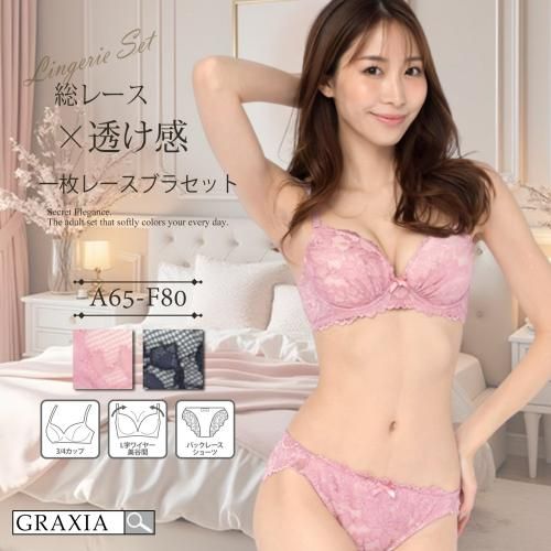 【クリスマスセール!全品10%OFF】大人っぽいデザインとバック総レースによる肌の透け感がとてもセクシーなブラセット(ブラセット)
