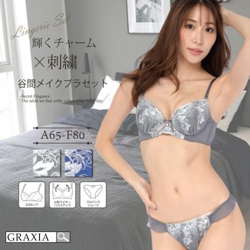 フロントの輝くチャームに刺繍が美しいブラ・ショーツセット(ブラセット)。落ち着いた印象のワンカラーに映える刺繍が上品さを引き出し、下厚カップでボリュームアップと谷間メイクが可能です。ショーツはサイドフリルで可愛いらしさをプラス。モダンでシックにまとまる大人のランジェリーです。