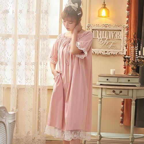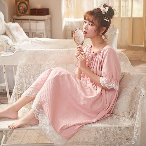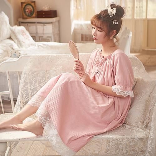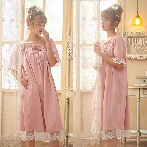 ふんわりゆったり着られるワンピースのルームウェア。袖と裾に付いたレースがキュートな女性を演出。胸元のリボンを引っ張ることでギャザーを作り柔らかい雰囲気を引き出し、くつろぎタイムにピッタリの商品です♪