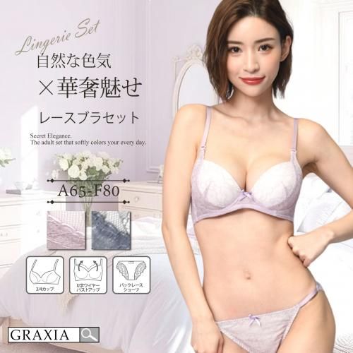 総レース仕立ての細いストリングスが華奢にみせるポイントのブラショーツセット(ブラセット)