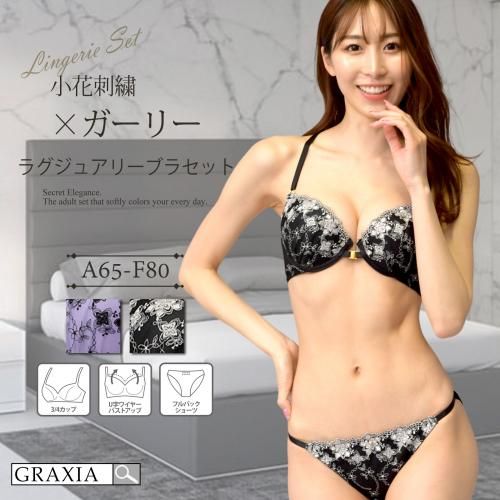 小花刺繍を散りばめたガーリーデザインなブラ・ショーツセット(ブラセット)