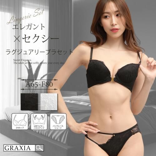 落ち着いた雰囲気ながらエレガントさをプラスしてくれるデザインで魅了するブラ・ショーツセット(ブラセット)。シンプルな単色カラーで落ち着いた雰囲気のセットブラです。ショーツはヒップラインに大胆なレースをあしらっており、脚長効果が期待できるデザインショーツとなっております。シンプルなデザインで胸元にはゴールドフックを使用しているので、セクシーな大人の女性に変身させてくれます。