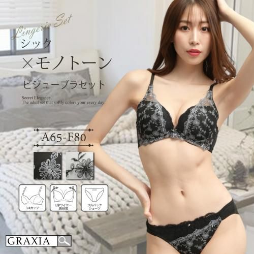 シックなモノトーンが上品な大人の色気も演出してくれるブラ・ショーツセット(ブラセット)