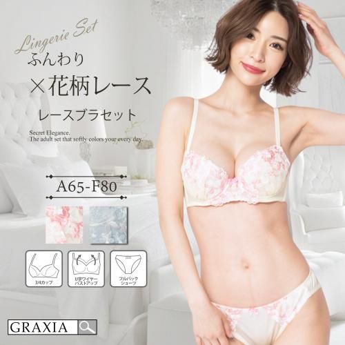ふんわりとした質感の花柄レースが映える華やかなブラ・ショーツセット(ブラセット)