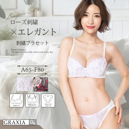 鮮やかなローズ刺繍が目を引く大人かわいいブラ・ショーツセット(ブラセット)