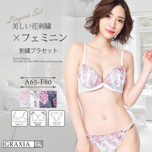 【クリスマスセール!全品15%OFF】美しい花刺繍に華やいだ気分になりそうなブラ・ショーツセット(ブラセット)