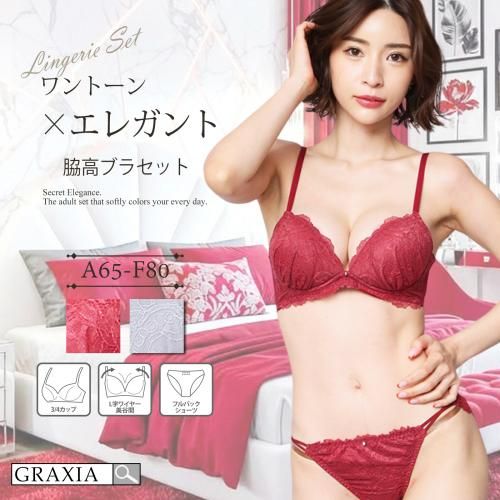 ワントーンで大人っぽく決めるブラ・ショーツセット(ブラセット)。繊細レースのエレガントなセット。単色で大人っぽくシンプルにまとめました。脇高設計で気になるハミ肉をしっかりホールド。取り外し可能パッドでボリュームも自由自在にチェンジ。美しい谷間メイクを叶えます。