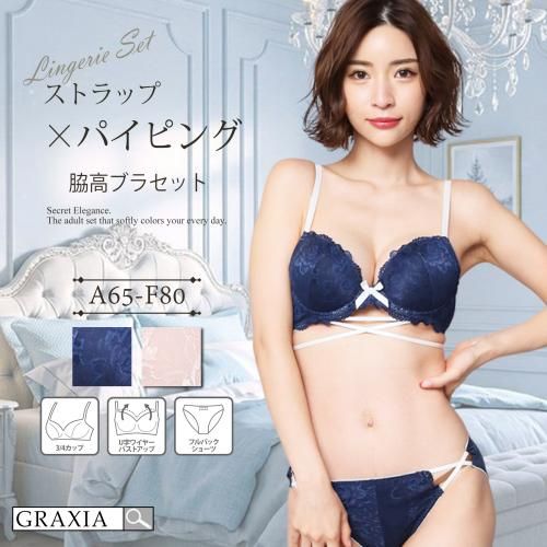 ストラップとパイピングの配色がオトナ可愛いブラ・ショーツセット(ブラセット)