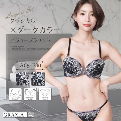 大人カラーに華やかな刺繍をちりばめたブラ・ショーツセット(ブラセット)。定番ラインにきらびやかな刺繍を施してクラシカルなテイストをプラス。ダークなカラーで大人っぽい印象に仕上げました。ブラはソフトワイヤーでバストを優しく包み込み、フロントにはマットゴールドのチャームが可憐なきらめきを添えています。ショーツはサイドストリングでレッグラインをスラリと魅せてくれます。