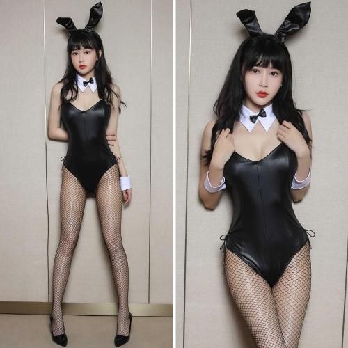レザー調でちょっとクールなバニーガール風コスプレ(COSPLAY)