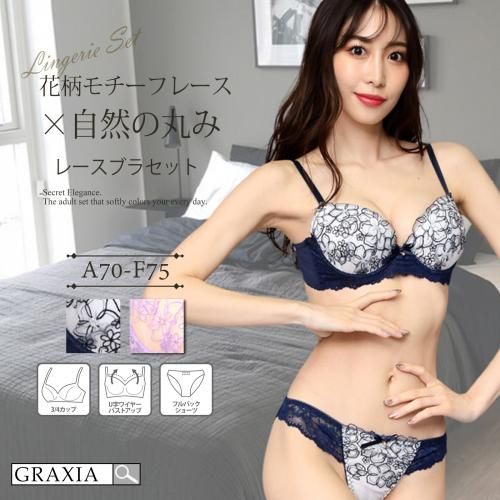 花柄モチーフレースを施した大人かわいいブラ・ショーツセット(ブラセット)