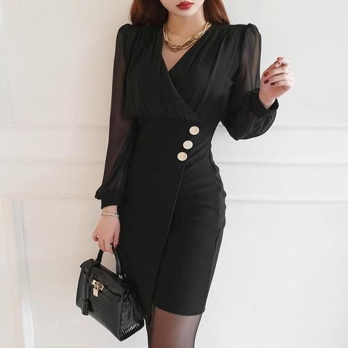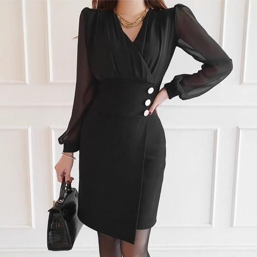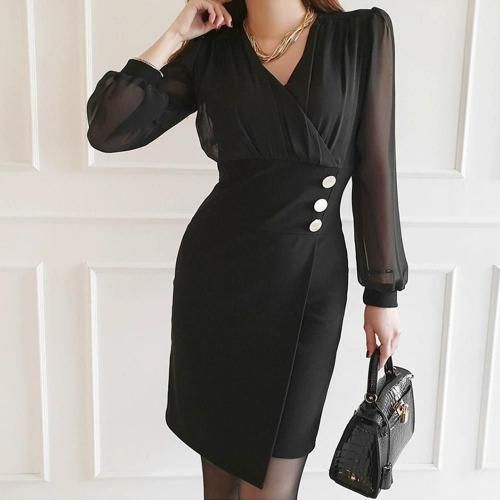 透け感とソフトな感触でレディライクに仕立てたカシュクールワンピース(キャバドレス・CABARETDRESS)。深めのVゾーンで大人な雰囲気のカシュクールワンピ。透け感のある袖で軽やかさを加え女性らしい優しいラインに。