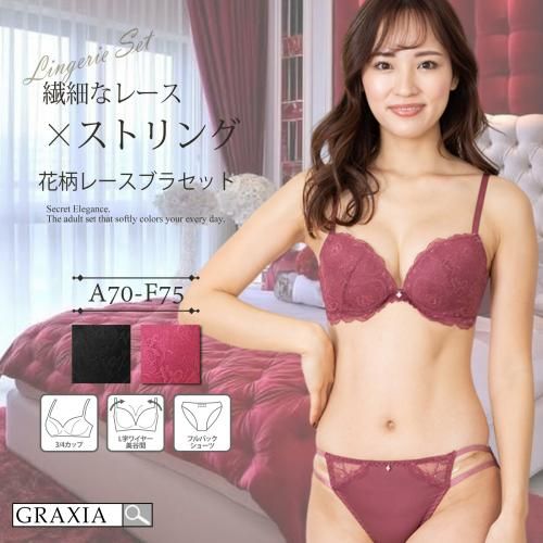 繊細なレースとストリングのデザインがクール&セクシーなブラ・ショーツセット(ブラセット)