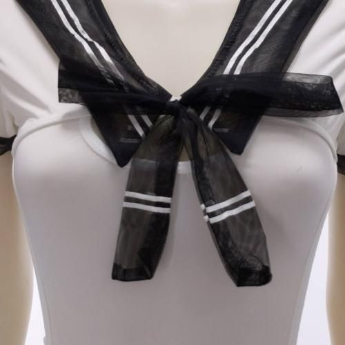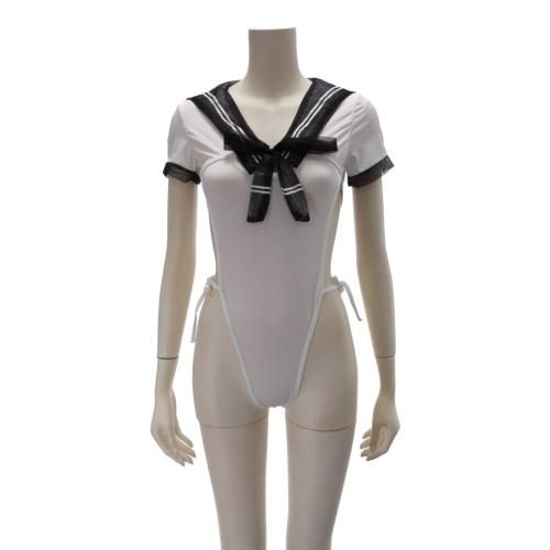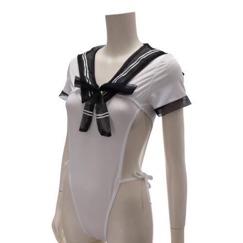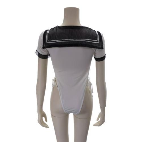 セーラー風ハイレグ女子のテディ(TEDDY)。パッと目を引くハイレグは、脇の下からクロッチまで大胆に。クロッチ部分はホック付きなので脱着も簡単。セーラーのようで、体操服も思わせるセクシーな要素が詰まったコスプレ。