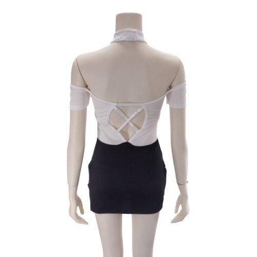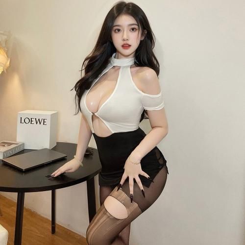 挑発的な態度をお仕置きOL風コスプレ(COSPLAY)。バストのリングが谷間を強調し、ホルターにはマジックテープを使用。全体的にタイトな作りでボディラインもくっきり艶めかしく。マイクロミニスカート部分の両サイドとバックスタイルにレースアップデザインを施しています。挑発してくる彼女のストッキングをビリビリに破りお仕置きをしたくなること間違えなし。