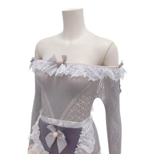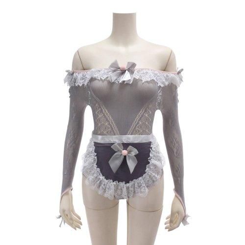 編み目からのぞく素肌が色っぽいウエイトレス風セクシーコスプレ(SEXYCOSPLAY)。抜群のストレッチ性が特徴の網タイツ生地で仕立てたテディ。ボディに沿って伸びる編み目から見える素肌と、妖艶なシルエットがパートナーの期待を煽ります。そんな興奮もリボンやレースのキュートなあしらいでちょっと癒される時間も♪