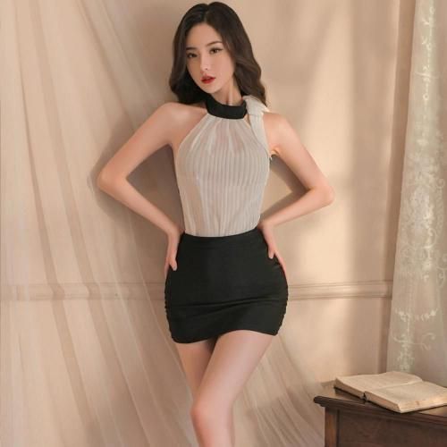 バックスタイルに注目のOL風コスプレ(COSPLAY)。透け感のあるアメリカンスリーブのノーマルなブラウスとミニスカートと思いきや、驚きのバックスタイルにパートナーもドッキリ!強烈セクシースタイルに。このギャップには耐えられない♪ちょっとドラマ仕掛けで挑戦したいコスチュームです。