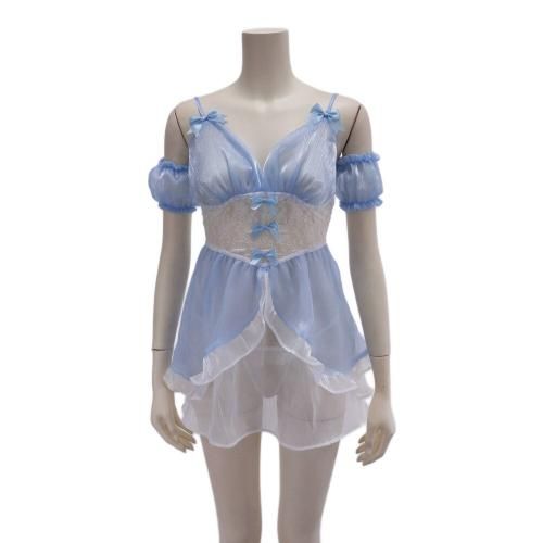 セット内容ワンピース、Tバックショーツ、アームリング、リボン、ニーハイストッキング 5点