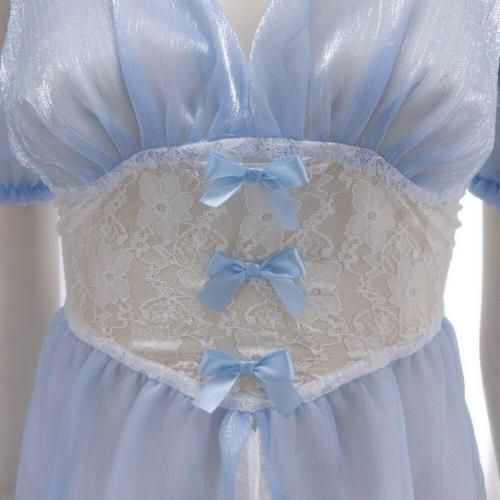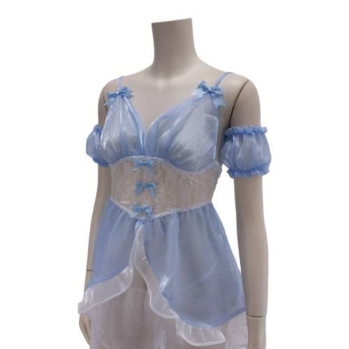 キラキラ&フリフリのスカートでアイドル要素満載のコスプレ(COSPLAY)。淡いカラーにレースとリボンをあしらった清純派アイドル感の強いコスチューム。全体的に透け感があり、どこから見ても素肌がうっすらと見える感じが色っぽい♪ラメ糸もきらめいて存在感のあるデザインです。