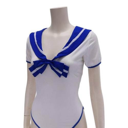 うっすらと映る素肌が色気たっぷり♪学生服風コスプレ(COSPLAY)。定番のセーラー服をセクシーなテディにアレンジ。胸元は大きく開け、ハイレグの切れ込みも深め、背中はレースアップで肌魅せも。際どいデザインと薄め生地の透け感がパートナーの視線を奪います。クロッチはスナップボタンで開閉できます。大胆ながらも可愛らしさを持ち合わせたセーラー服風コスはビギナーさんでもチャレンジしやすいかも。
