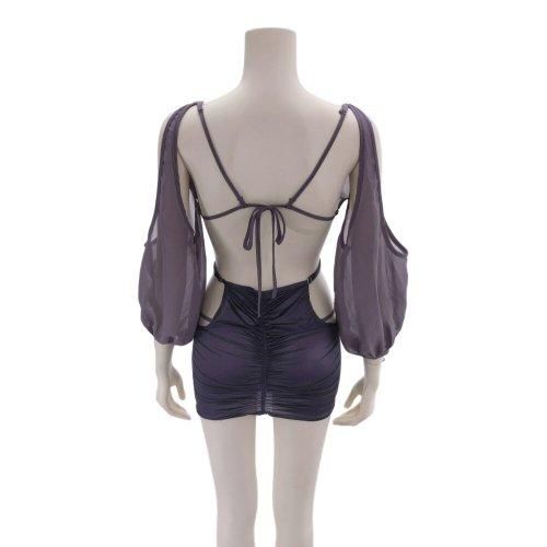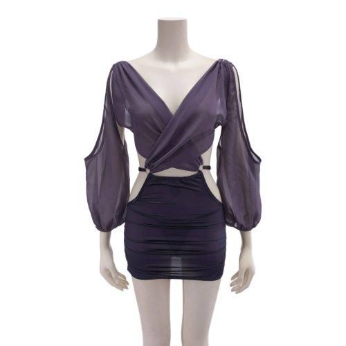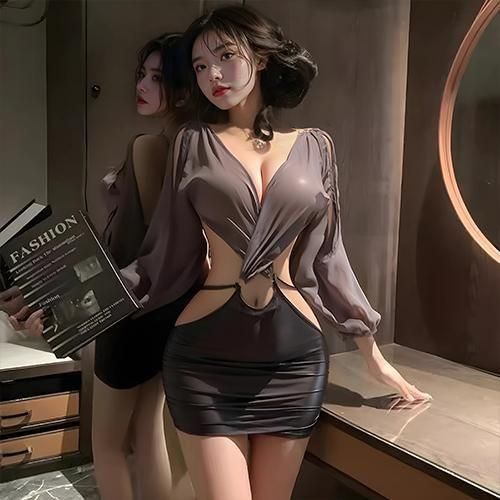 胸元もバックも大胆オープンのOL風コスプレ(COSPLAY)。透け感のある生地に、Vカットの胸元、腰まわりのカットなど、ドキドキポイントが満載。さらにバックスタイルは大きく開いた背中とピタピタのヒップラインに大興奮でお仕事に手が付かない♪全身どこから見てもセクシーなボディコンOLさんに変身しちゃおう。