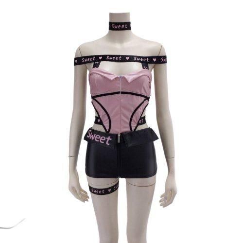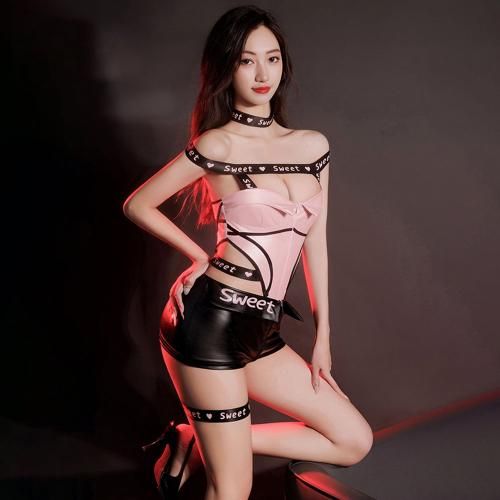 闘争心を掻き立てちゃう♪ちょっと甘めに迫るレースクイーン風コスプレ(COSPLAY)。ピンクのエナメル素材にガーリーなロゴ入りのストリングをほどこしたテディ。見た目はキュートでも、ファスナーを下ろせばオープンクロッチに♪スカートはハードな印象のブラックエナメルでグッとボディコンシャスな印象に。ボディラインを見せつけるフィット感と超ミニ丈で男心を掴んじゃおう。