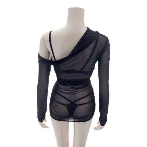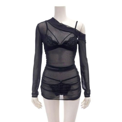 適度なフィット感が大人セクシーなベビードール(BABYDOLL)。シースルーでオールカバータイプのランジェリー。ボディコンシャスなのにゆったりとしたドレープをきかせたデザインで落ち着いた大人の雰囲気を醸し出してくれます。インナーにアイラッシュレース仕立てのブラ&ショーツを着用すればシアーなトップスにシルエットが浮き上がりセクシーな雰囲気に様変わり、それぞれのアイテムを単独で使ってもシーンを選ばず使い勝手の良いセットランジェリーです。