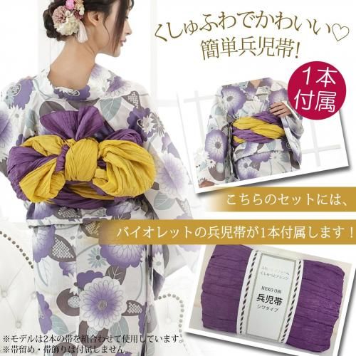セット内容浴衣、兵児帯(バイオレット色×1)、下駄 3点