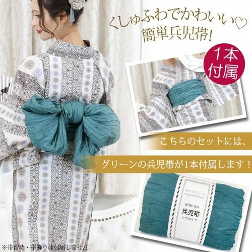セット内容浴衣、兵児帯(グリーン色×1)、下駄 3点