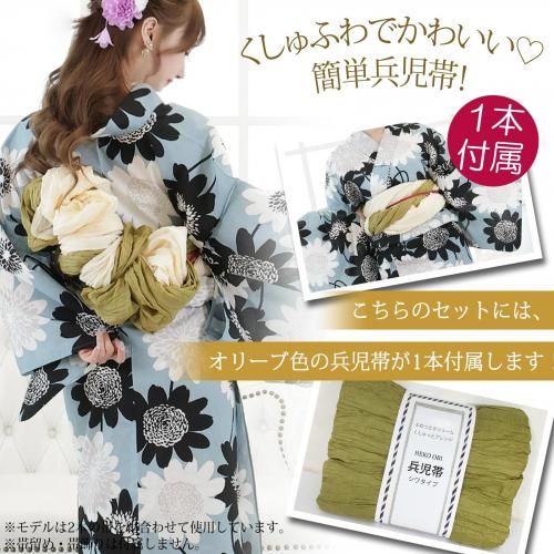 セット内容浴衣、兵児帯(オリーブ色×1)、下駄 3点