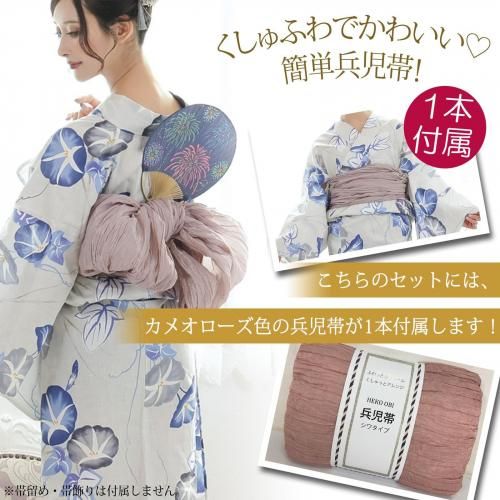 セット内容浴衣、兵児帯(カメオローズ色×1)、下駄 3点