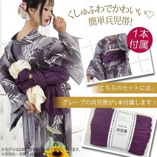 セット内容浴衣、兵児帯(グレープ色×1)、下駄 3点