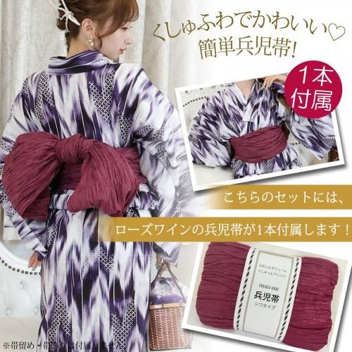 セット内容浴衣、兵児帯(ローズワイン色×1)、下駄 3点