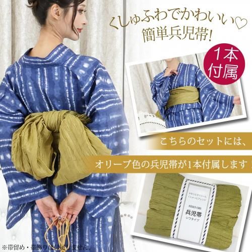 セット内容浴衣、兵児帯(オリーブ色×1)、下駄 3点