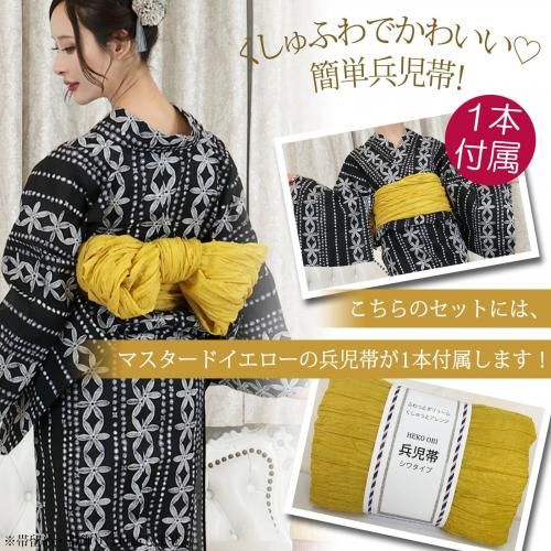 セット内容浴衣、兵児帯(マスタードイエロー色×1)、下駄 3点
