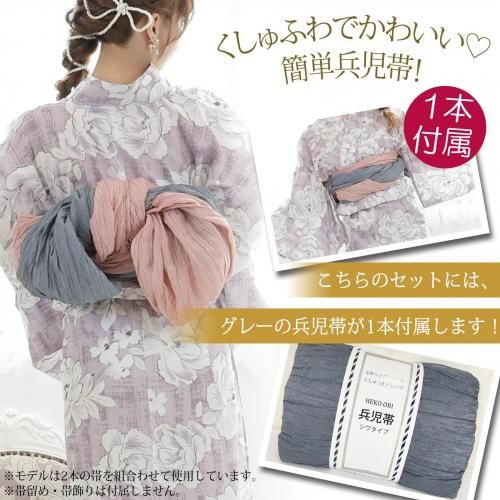セット内容浴衣、兵児帯(グレー色×1)、下駄 3点
