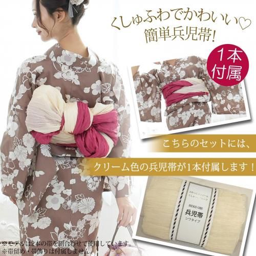 セット内容浴衣、兵児帯(クリーム色×1)、下駄 3点