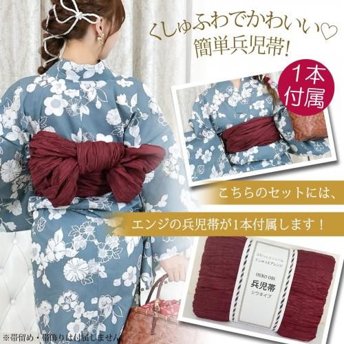 セット内容浴衣、兵児帯(エンジ色×1)、下駄 3点