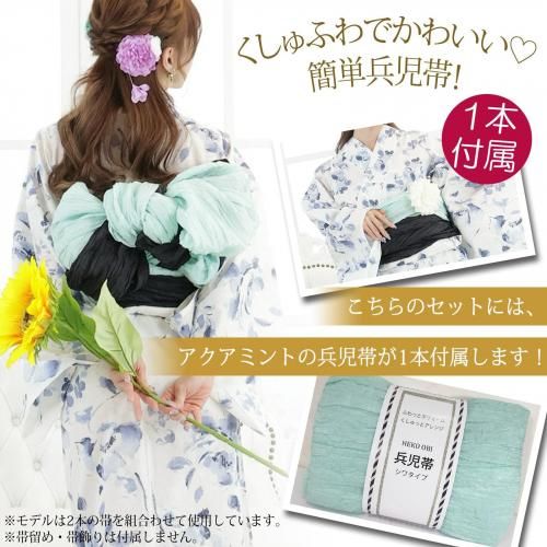 セット内容浴衣、兵児帯(アクアミント色×1)、下駄 3点