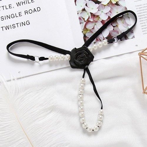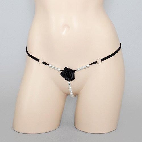 バラのモチーフがついたパール付きのTバックショーツ(T-BACK・SHORTS) ブラック
