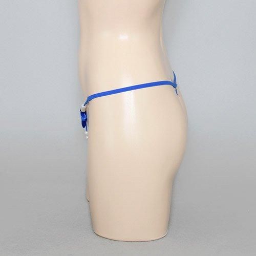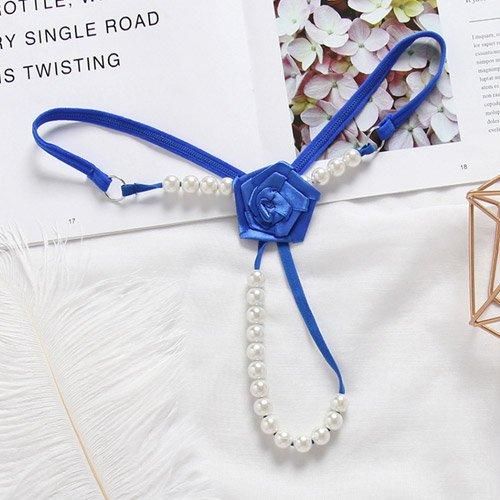バラのモチーフがついたパール付きのTバックショーツ(T-BACK・SHORTS) ブルー